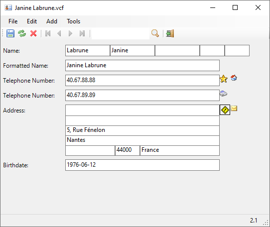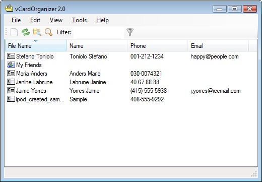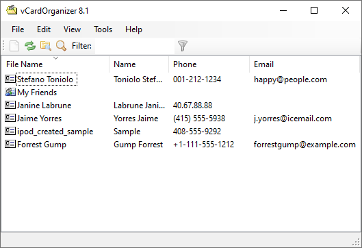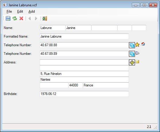 vCardOrganizer 2.1 Main Interface A vCard with vCardOrganizer 2.1